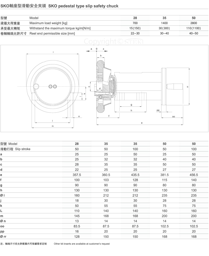 滑動(dòng)型安全夾頭生產(chǎn)廠家 技術(shù)參數(shù) 單位:mm