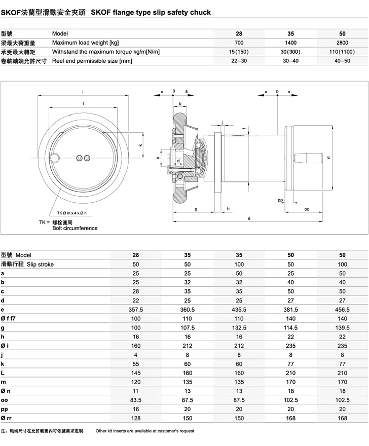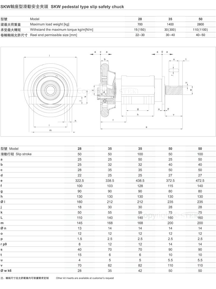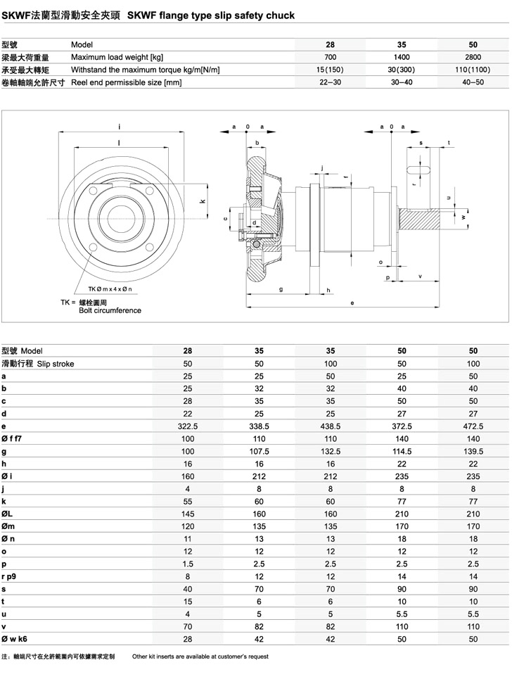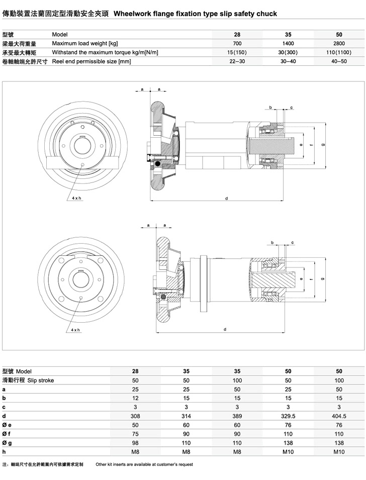滑動安全夾頭允許卷軸在機器運轉(zhuǎn)過程進行軸向調(diào)整。 調(diào)整可以通過手輪或者自動機構(gòu)進行。 軸向定位裝置確保卷軸安全,準(zhǔn)確的傳遞轉(zhuǎn)矩。 滑動型安全夾頭 技術(shù)參數(shù) 單位:mm